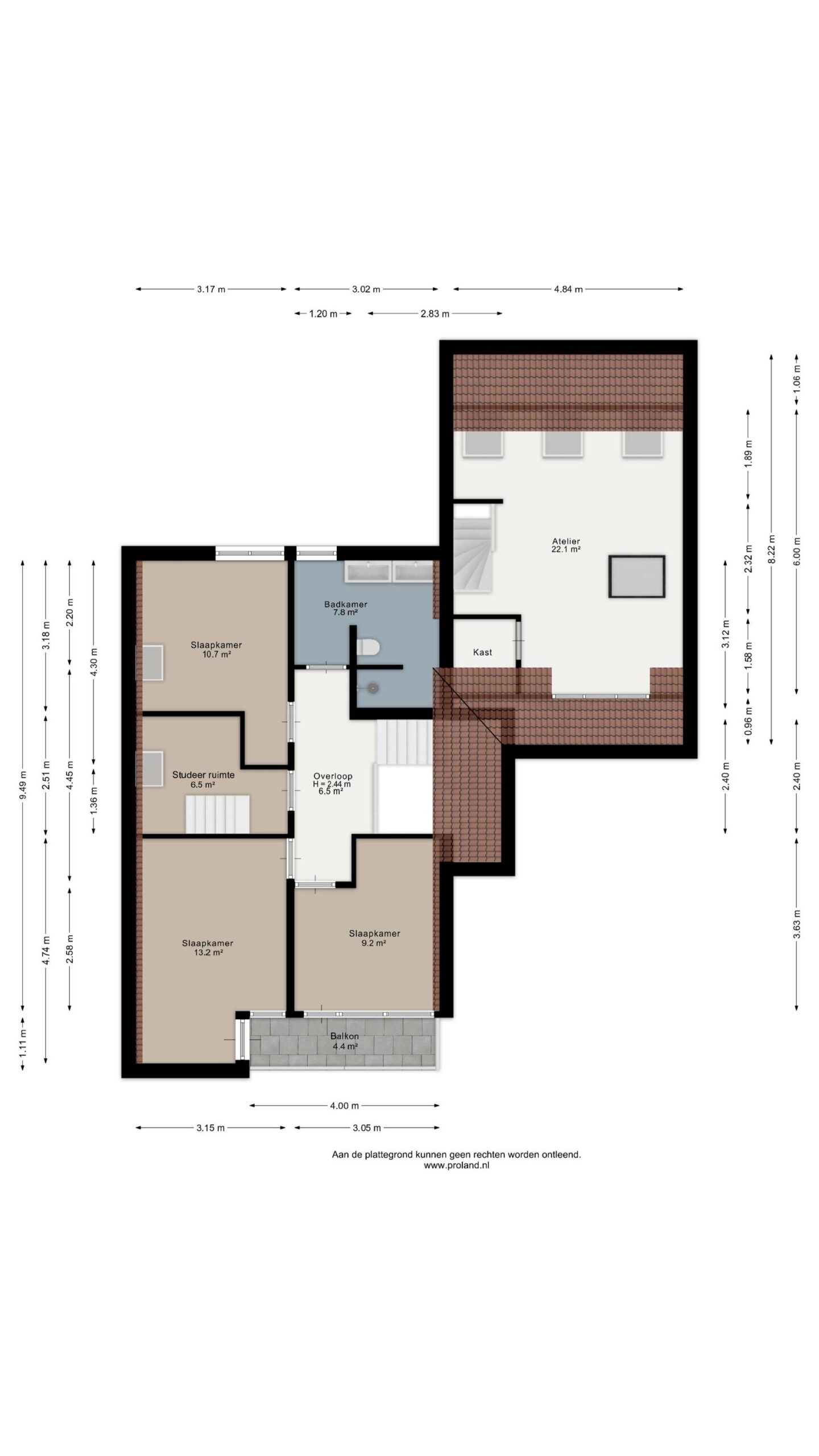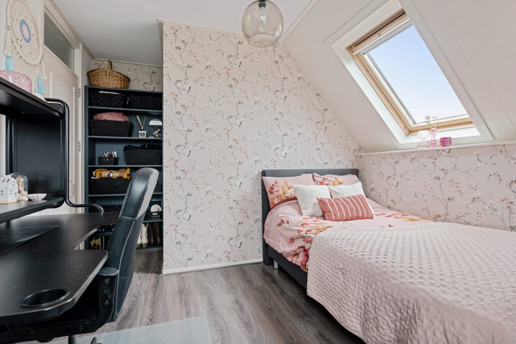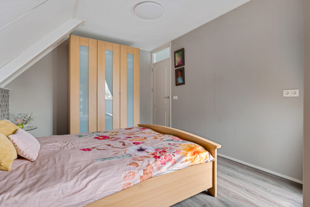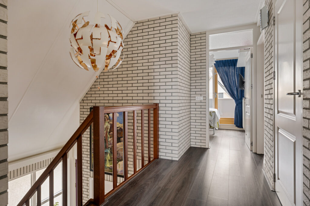 Op de verdieping van het woonhuis heb je via de overloop toegang tot studeer ruimte en 3 slaapkamers van ca 9, 11 en 13 m². Via de voorste slaapkamers heb je toegang tot het balkon aan de voorzijde van de woning. De keurige zolder die te bereiken is via een vaste trap in de studeer ruimte, is circa 11 m².
