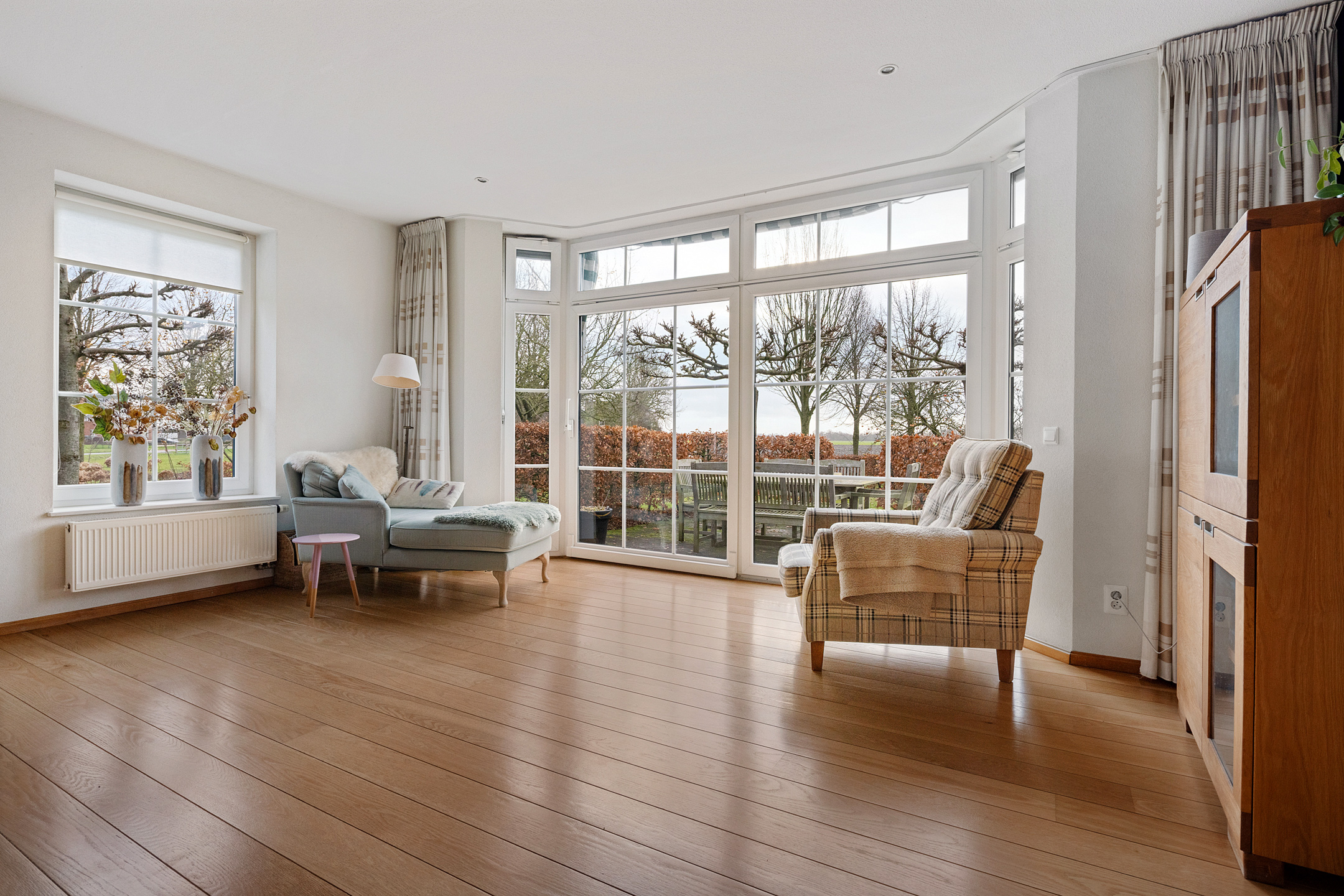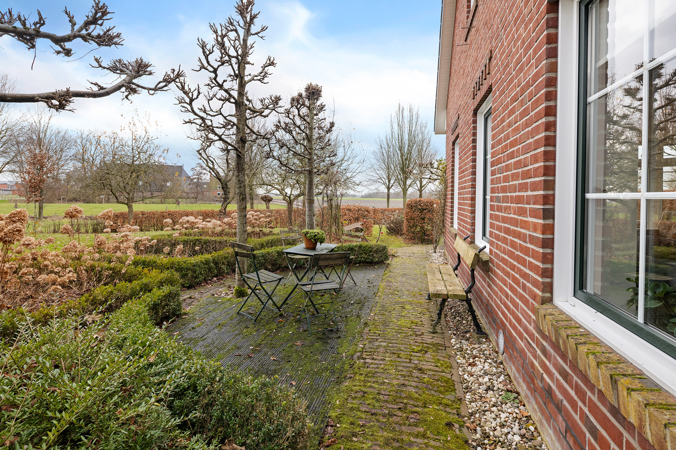 Hier geniet je elke dag van een adembenemend uitzicht over je eigen tuin, met daarachter de uitgestrekte landerijen. Een plek waar rust, ruimte en natuur samenkomen.