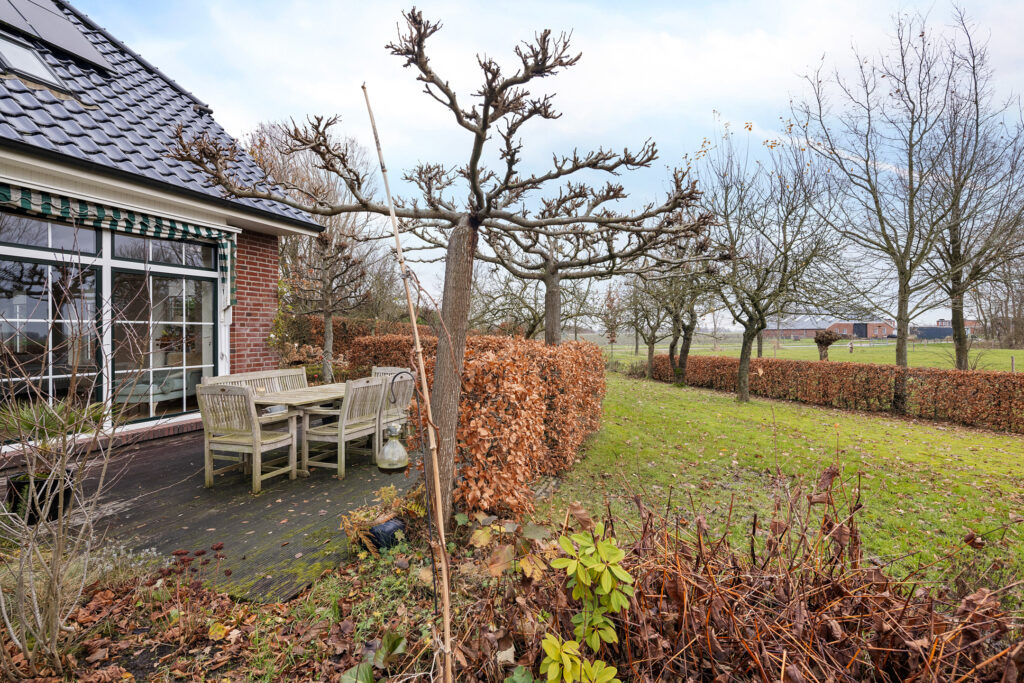 Alles in en rondom het huis is ontworpen met oog voor comfort én voor de unieke ligging. Grote raampartijen zorgen voor een prachtige verbinding met buiten en laten je het landschap in alle seizoenen beleven. Het gevoel? Alsof je iedere dag op vakantie bent. Het buitenleven is hier werkelijk fantastisch. De tuin biedt volop privacy en nodigt uit tot lange zomeravonden, ontspannen genieten en het leven in de natuur. Of je nu houdt van tuinieren, buiten eten of simpelweg uitkijken over het open landschap - Veldzicht 21 biedt het allemaal.