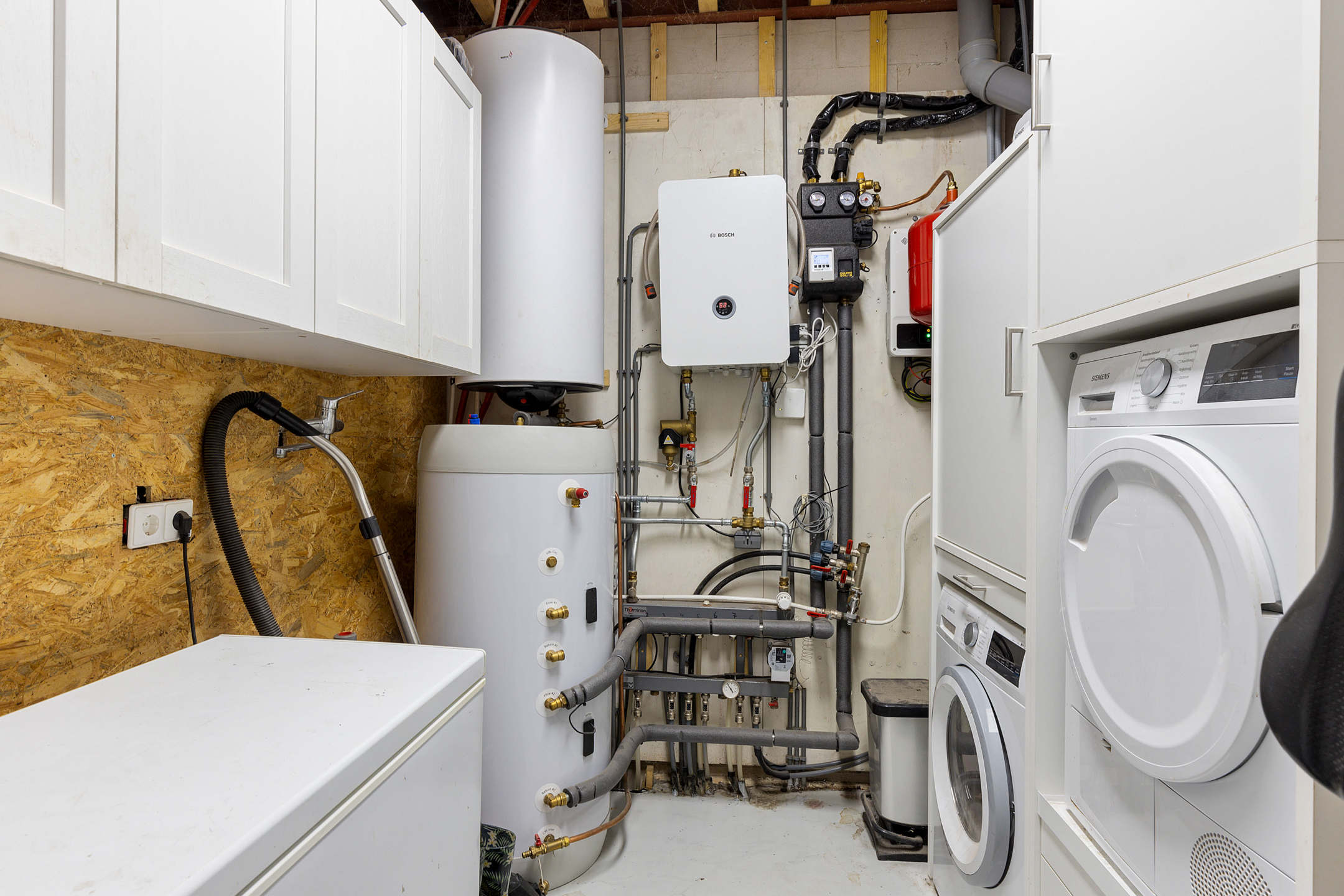* Vloerverwarming in keuken, toilet beneden, hal, garage, badkamer en toilet boven;