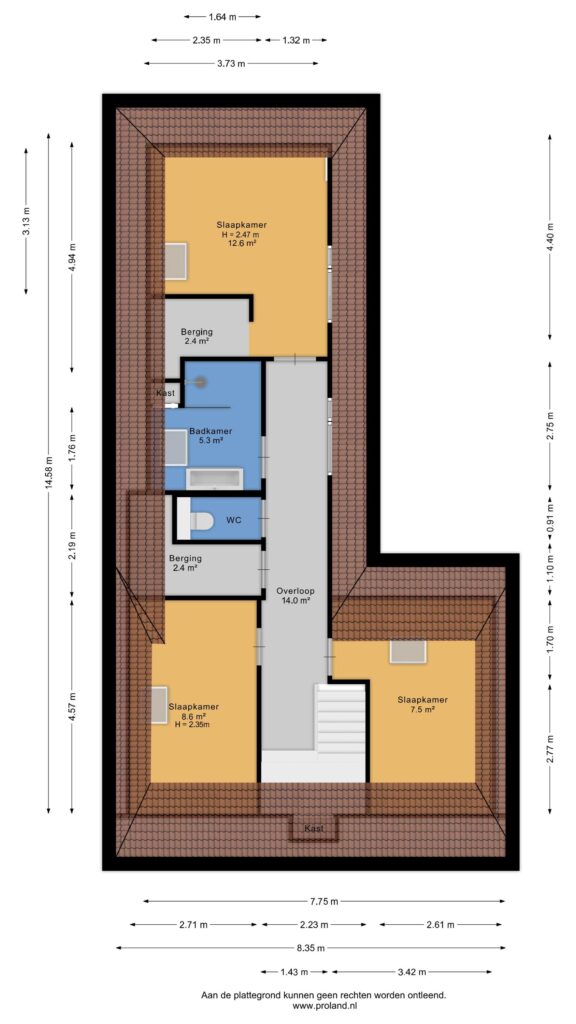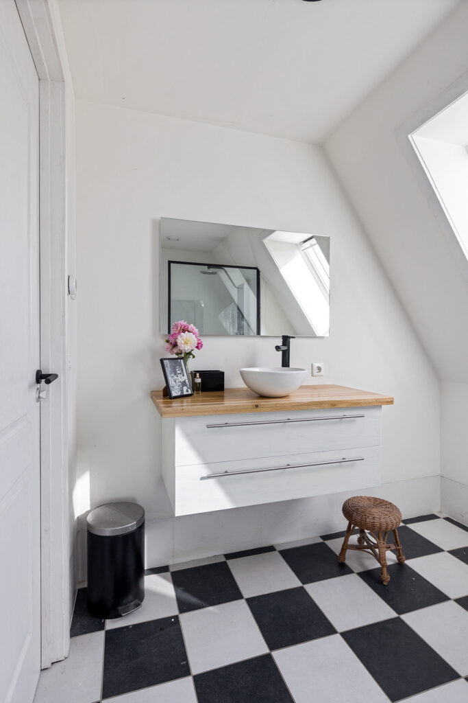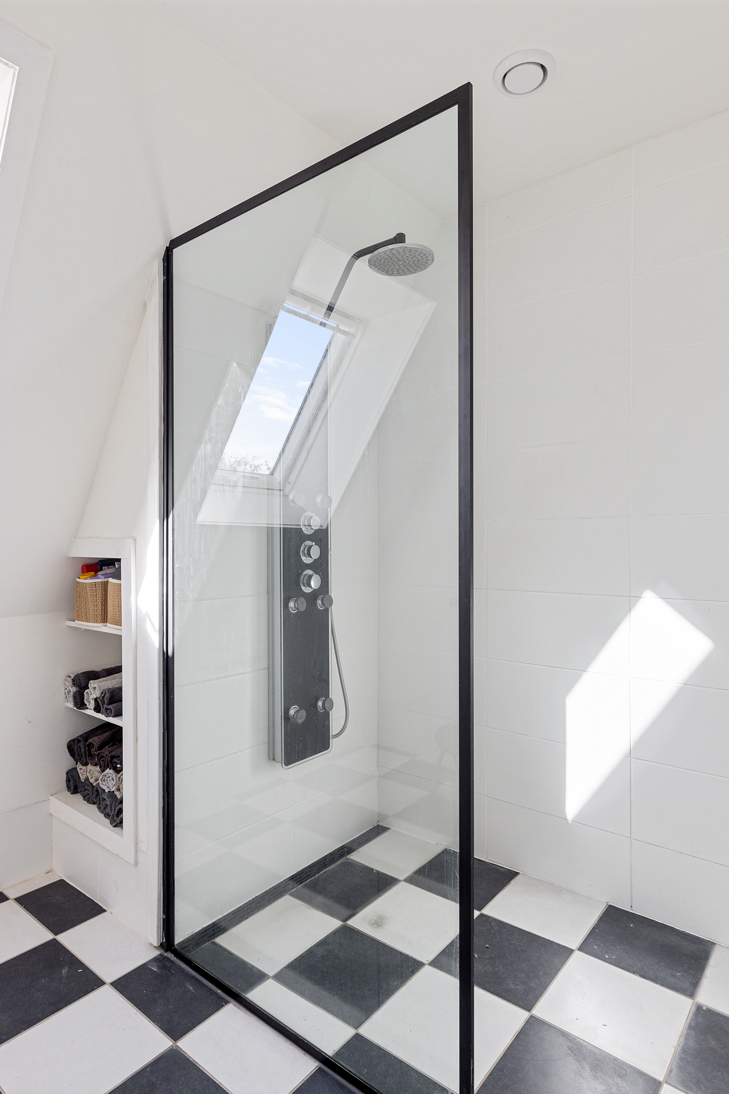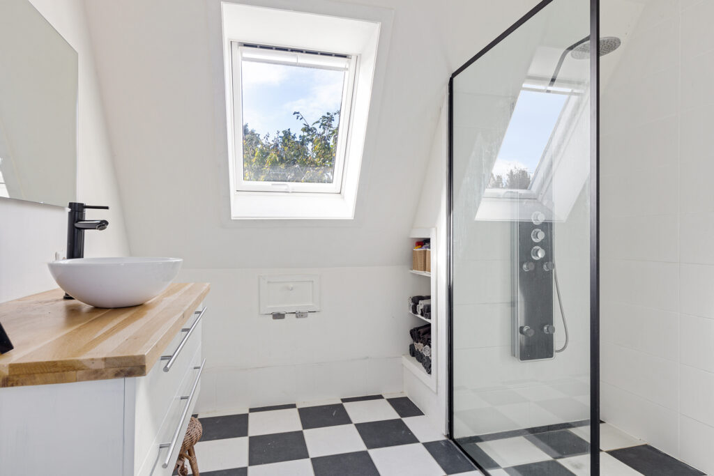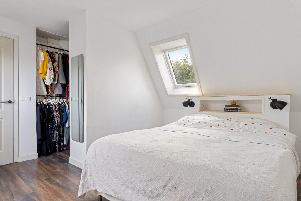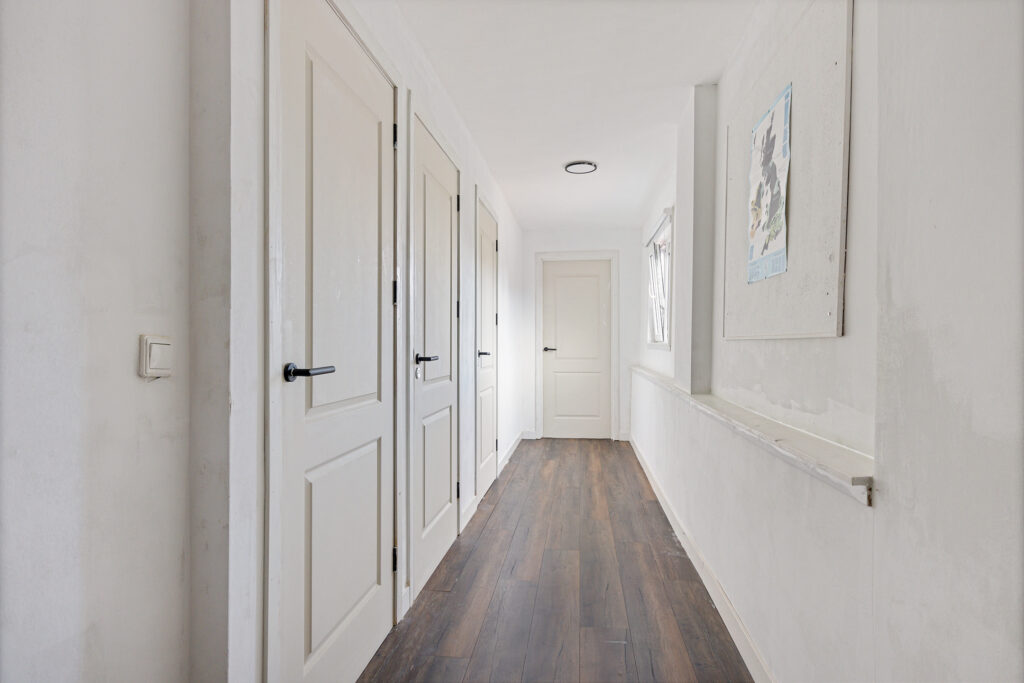 Middels een trapopgang in de woonkamer toegang tot de verdieping waar zich 3 slaapkamers bevinden van ca. 7, 9 en 13 m². De grootste slaapkamer is voorzien van een walk-in-closet. Via de overloop tevens toegang tot een berging, toilet en de badkamer. De badkamer van ca. 5 m² is voorzien van een inloopdouche, wastafel met meubel, dakraam en vloerverwarming.