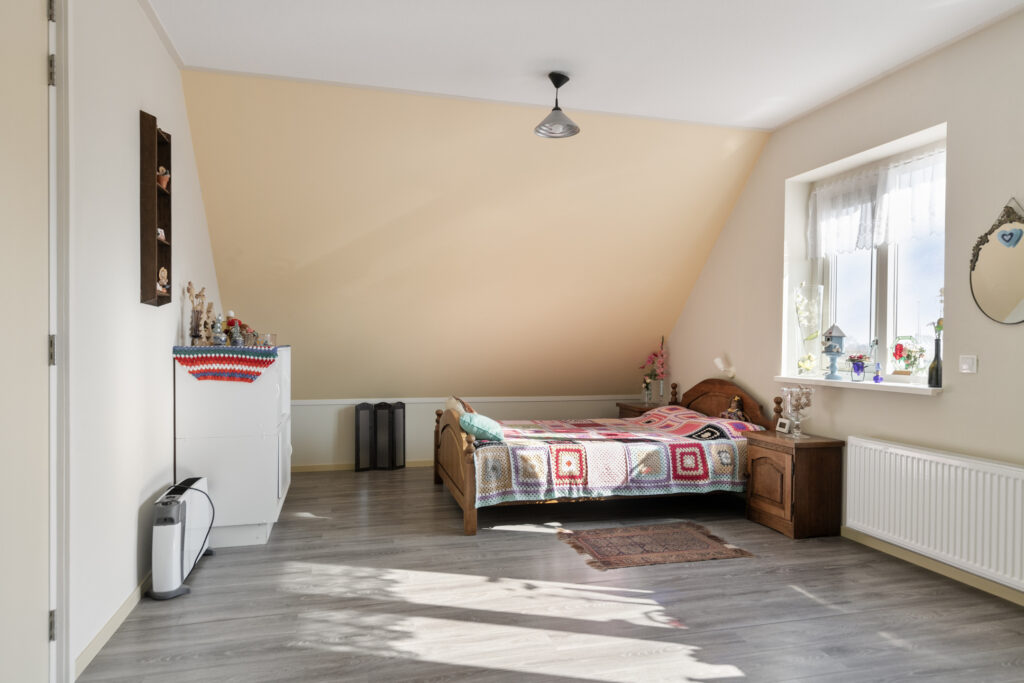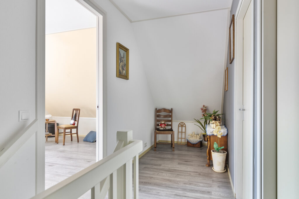 Middels een overloop op de verdieping toegang tot 3 slaapkamers van ca. 12, 12 en 21 m². De gehele bovenverdieping is voorzien van een laminaatvloer en wordt verwarmd middels radiatoren.