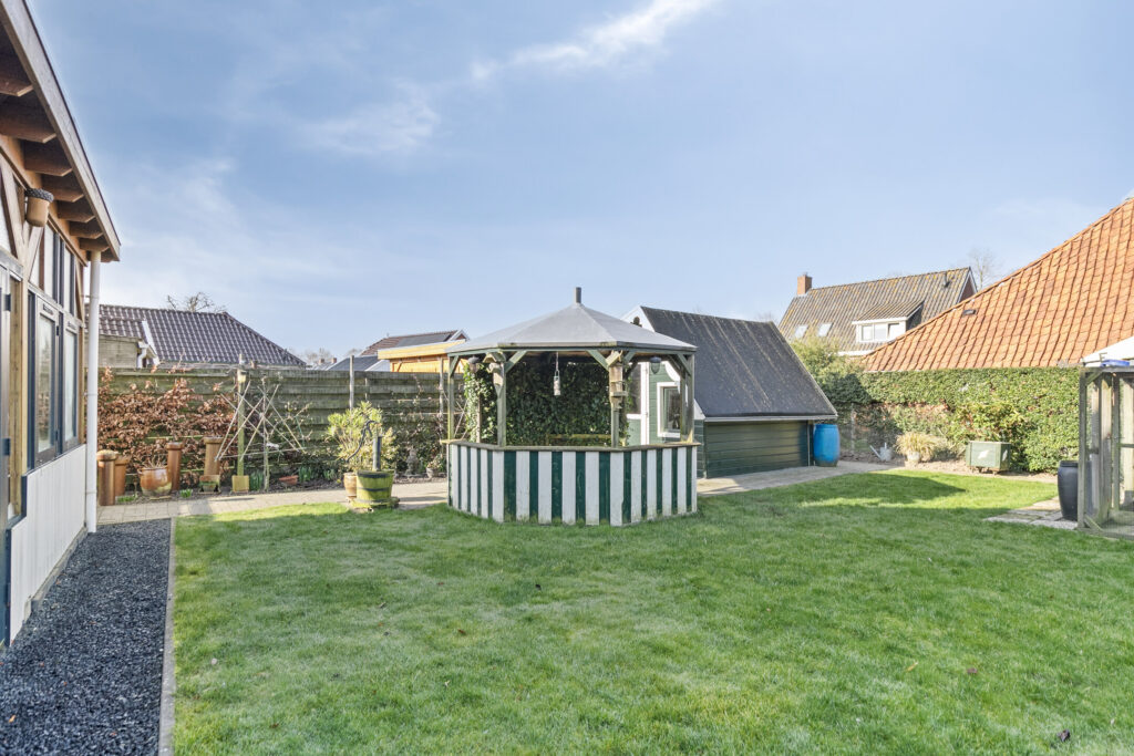 Deze woning is niet alleen functioneel, maar ook duurzaam. Het huis is volledig geïsoleerd, beschikt over 12 zonnepanelen, waardoor het niet alleen comfortabel is, maar profiteer je ook van een lagere energierekening. Vanuit de woonkamer heb je een heerlijk uitzicht over natuurlandschap en landerijen. De tuin achter de woning biedt volop privacy en ruimte om te ontspannen, te spelen of te tuinieren. Achter de woning bevindt zich een aangebouwde royale tuinkamer die een perfect verlengstuk van het buitenleven biedt, met het hele jaar door comfort zonder afhankelijk te zijn van het weer.
