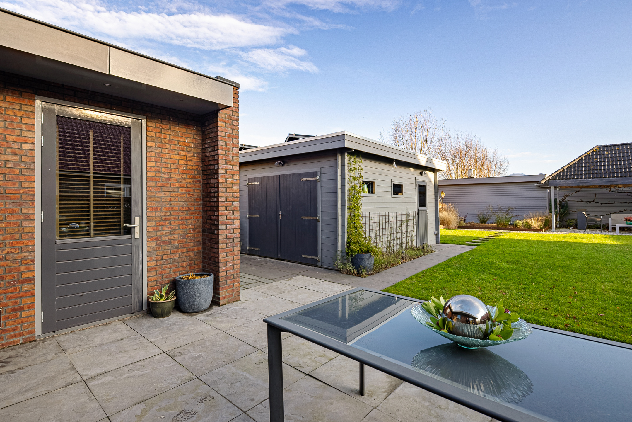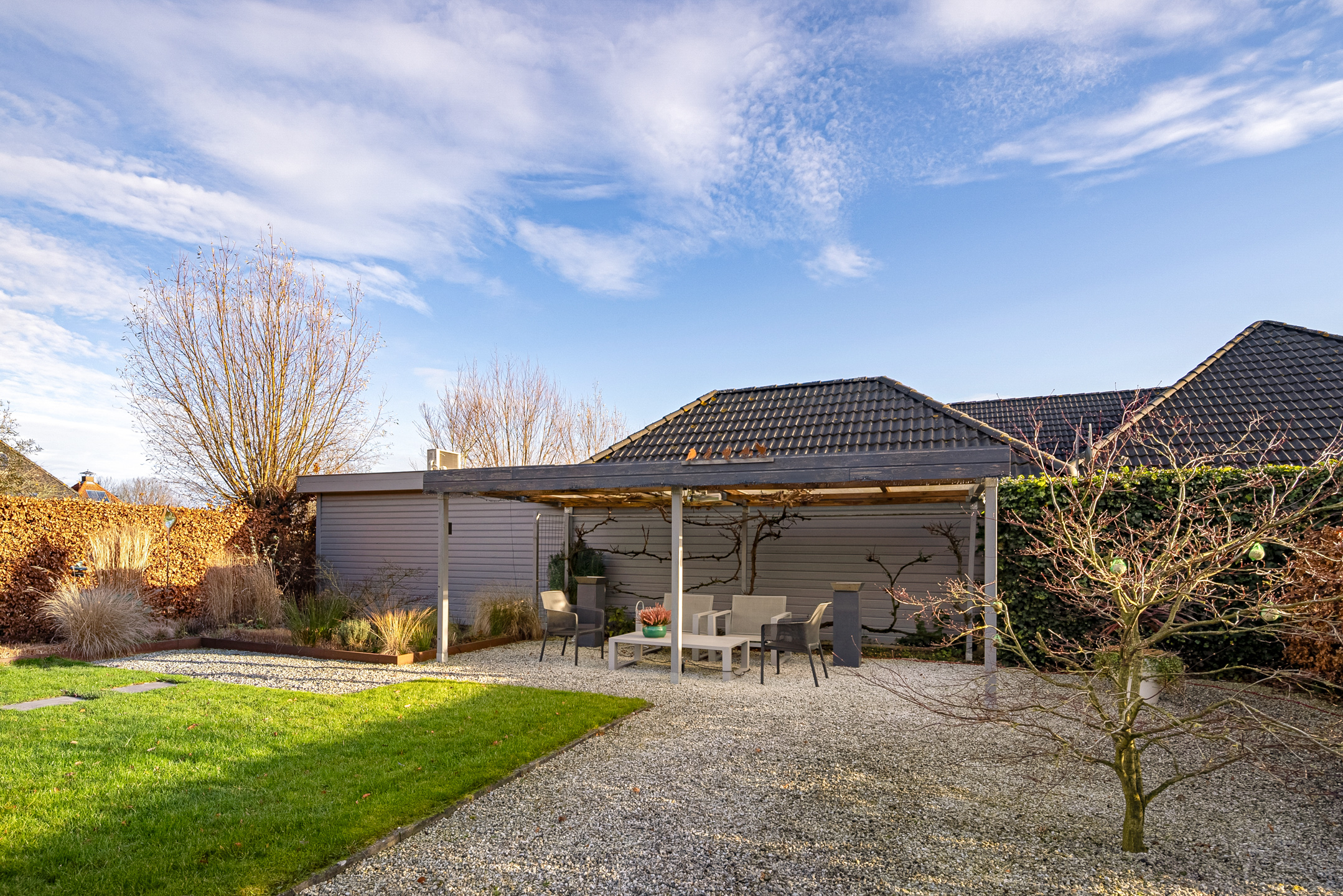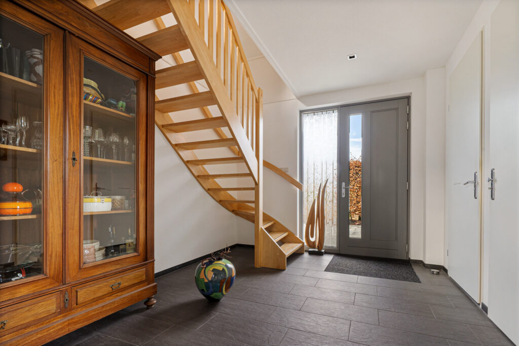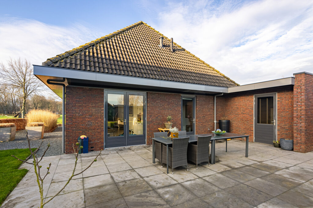 Rondom de woning ligt een verzorgde tuin die uitnodigt tot ontspanning en genieten. Een praktische tuinberging biedt ruimte voor tuingereedschap en extra opslag. Het vijvertje vormt een rustgevend element en zorgt voor een natuurlijke sfeer. Daarnaast is er een overkapping, ideaal om ook bij minder gunstige weersomstandigheden of tot late zomeravonden comfortabel buiten te vertoeven.