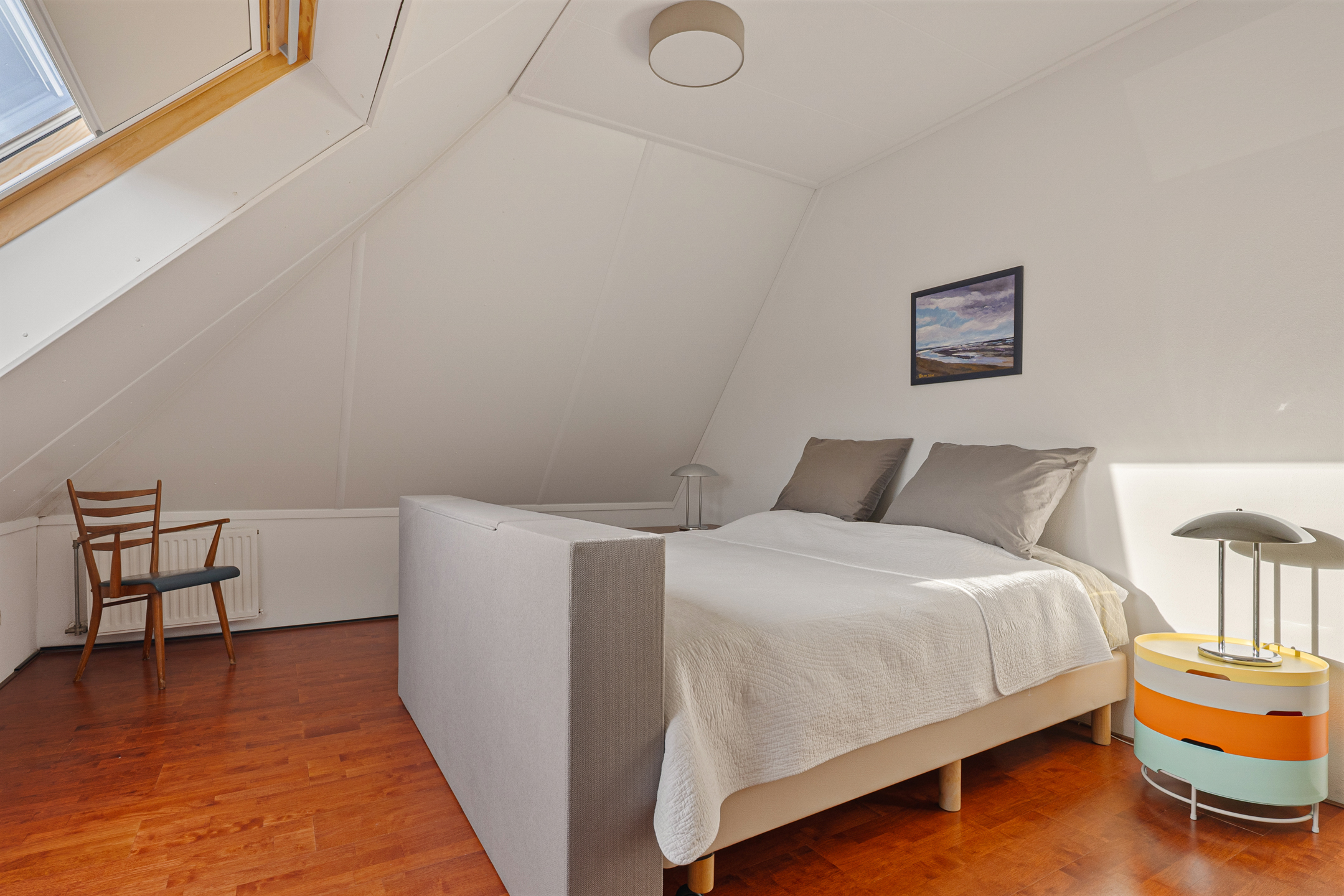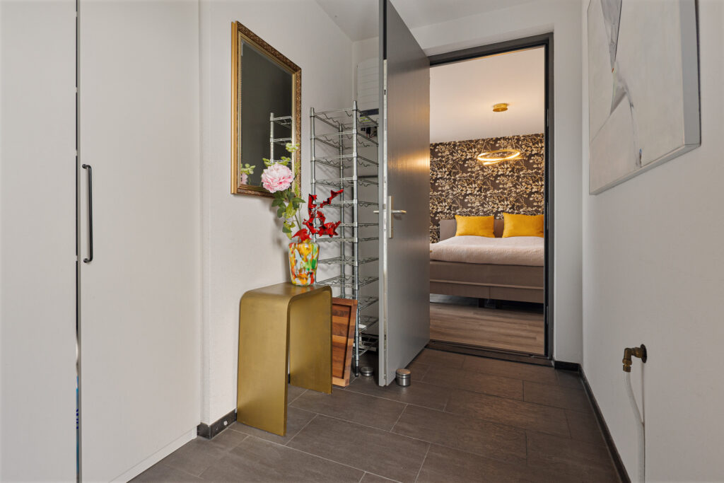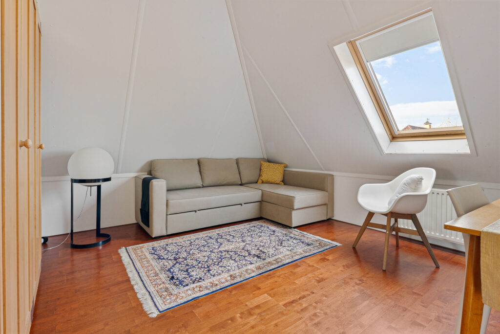 prettige woonbeleving gedurende de hele dag. De openslaande deuren geven direct toegang tot de achtertuin, waardoor je een perfecte overgang naar het buitenleven hebt. Via de bijkeuken van ca. 9 m² heb je toegang tot de slaapkamer van ca. 17 m² en badkamer (ca. 6 m²) met o.a. douche, 2e toilet en dubbele wastafel.