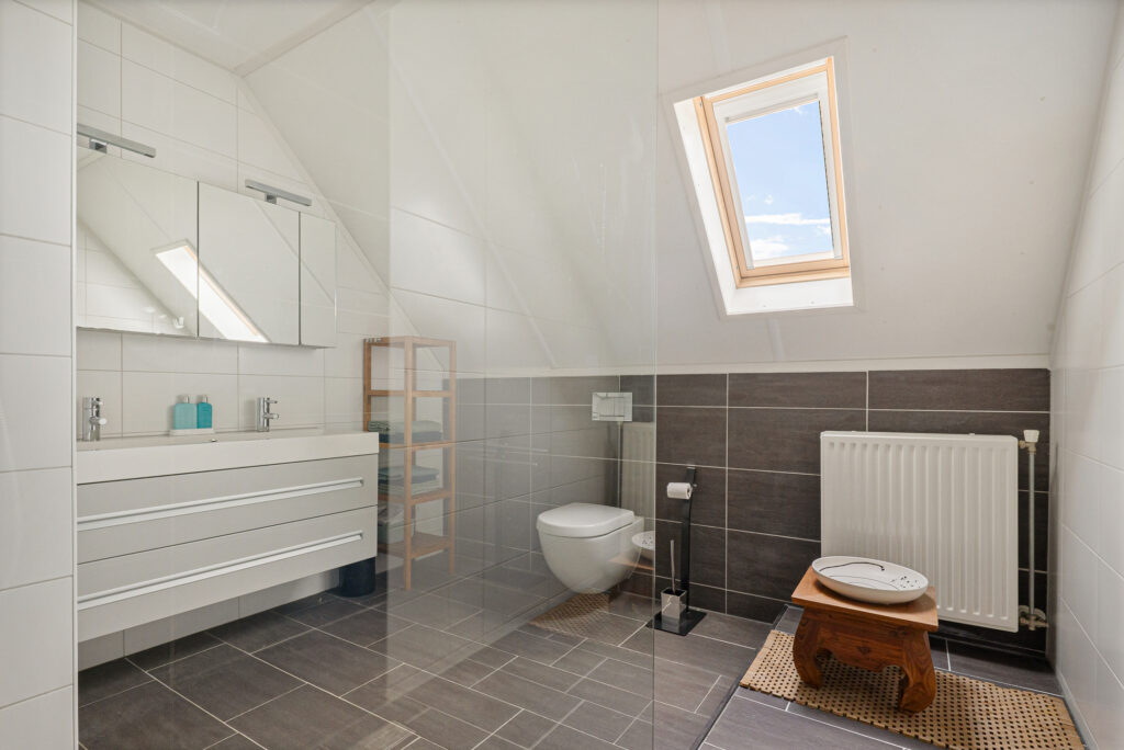 De woning is bovendien duurzaam en energiezuinig uitgevoerd. Zo zijn er maar liefst 18 zonnepanelen wat bijdraagt aan lage energielasten, en is er een laadpaal voor de electrische auto aanwezig, wat de woning helemaal klaarmaakt voor de toekomst. Dankzij de volledige isolatie geniet je van optimaal wooncomfort, een aangenaam binnenklimaat en een efficiënte energiehuishouding. De inrichting is met oog voor stijl en comfort gerealiseerd met een moderne keuken en 2 fraaie badkamers, die luxe en functionaliteit perfect combineren en zorgen voor extra comfort en privacy voor het hele gezin.