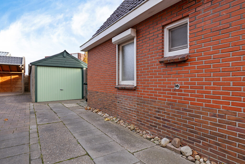 De vrijstaande garage is te bereiken via een gedeelde oprit (recht van overpad met nummer 1). Achter de woning is een beschutte tuin op het oosten. Een fijne plek om te genieten van het buitenleven.