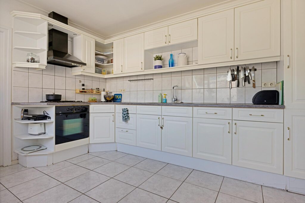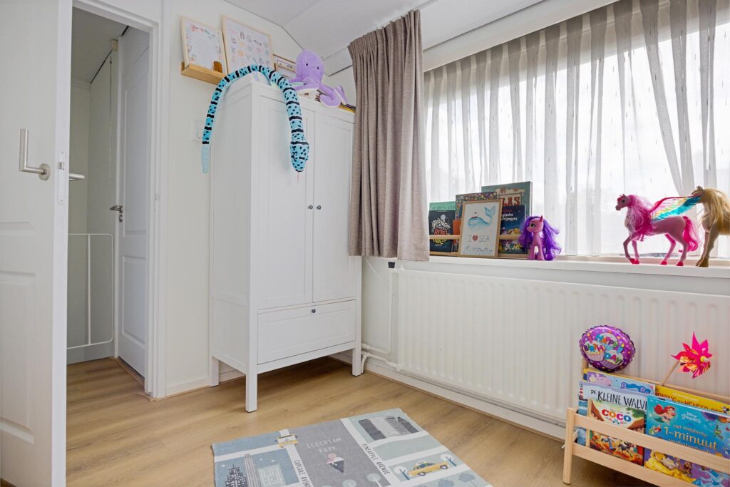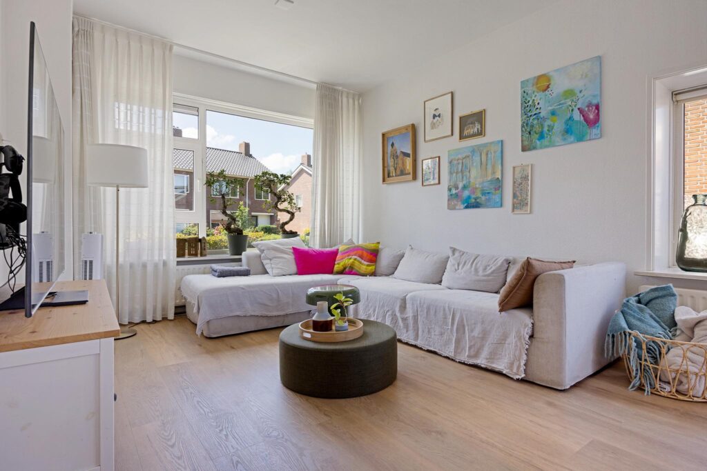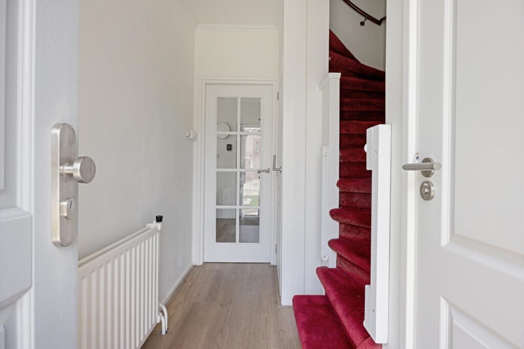 Intern beschikt het geheel over een centrale hal voorzien van meterkast, provisieruimte, modern toilet en trapopgang naar de eerste verdieping. Daarnaast biedt het toegang tot de L-vormige woonkamer voorzien van PVC en verbinding met de dichte eetkeuken. Deze dichte keuken biedt plaats aan een keurige inrichting en sluit aan op de bijkeuken met witgoedaansluiting en buitendeur. Op de eerste verdieping bevinden zich vervolgens drie slaapkamers - waarvan twee met vaste kasten - en een keurige badkamer met douche en wastafelmeubeltje alsmede een vlizotrap naar de vliering op de tweede verdieping.