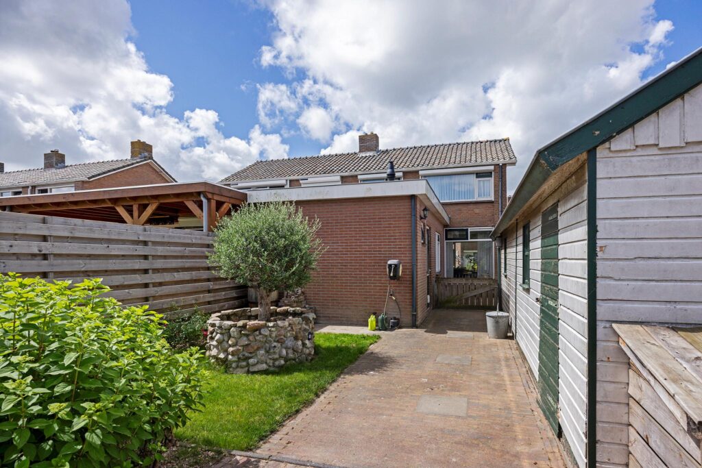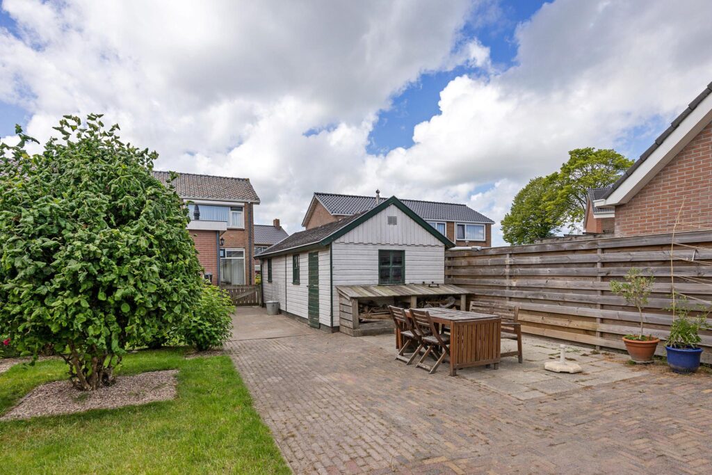 Op veilige loopafstand van deze dorpse voorzieningen bevindt zich de Prins Bernhardstraat, waar Brandsma De Jong op huisnummer 8 een heerlijke starterswoning te koop aanbiedt. Het betreft een 2-onder-1-kap woning, compleet met een uitgebouwde keuken en bijkeuken aan de achterzijde van de woning. Daarnaast beschikt het over een eigen oprit naar de vrijstaande houten garage, die met een maatvoering van bijna 24m2 royaal genoemd kan worden. Ook leidt deze oprit naar de verrassend diepe achtertuin met gazon, borders en een royaal zonneterras aan de achterzijde van de tuin.