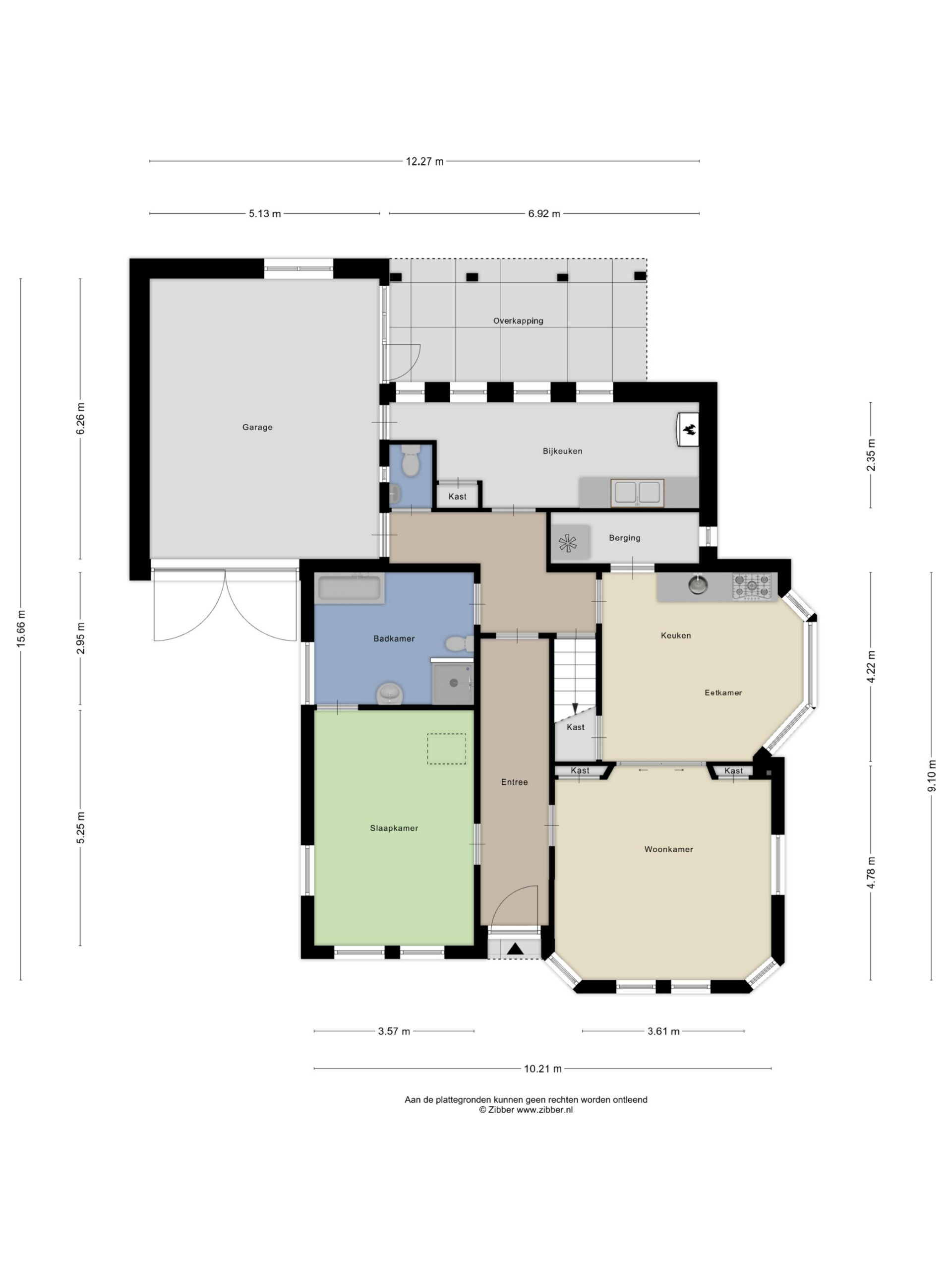 Entree, centrale hal met toegang tot de woonkamer en suite, aansluitend de open keuken met voorraadkast.