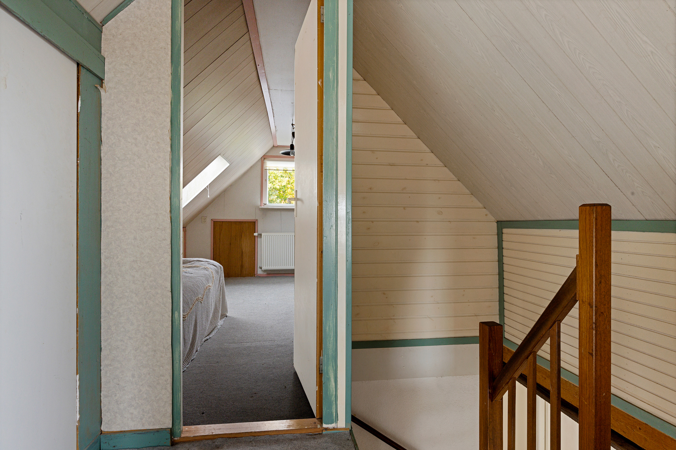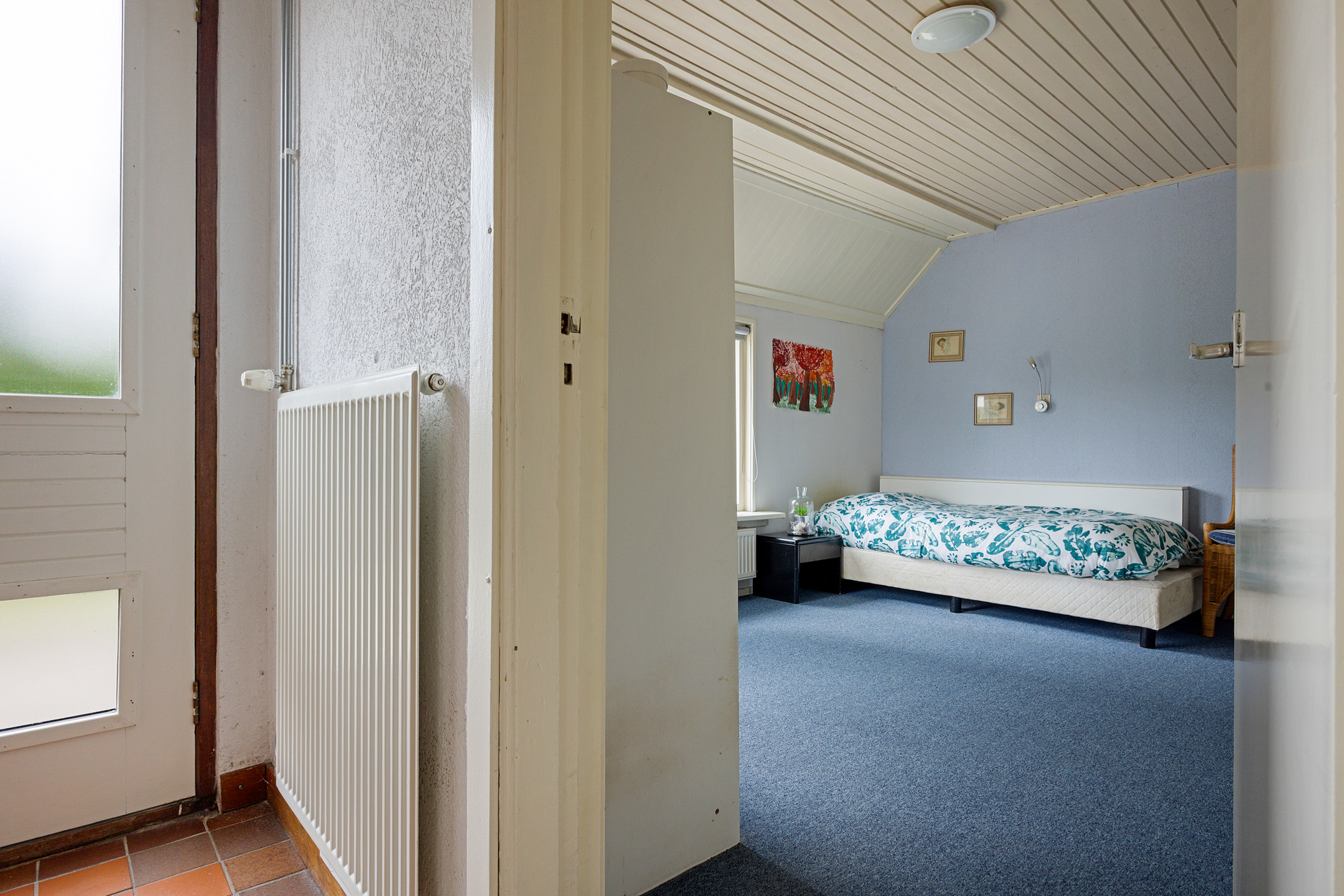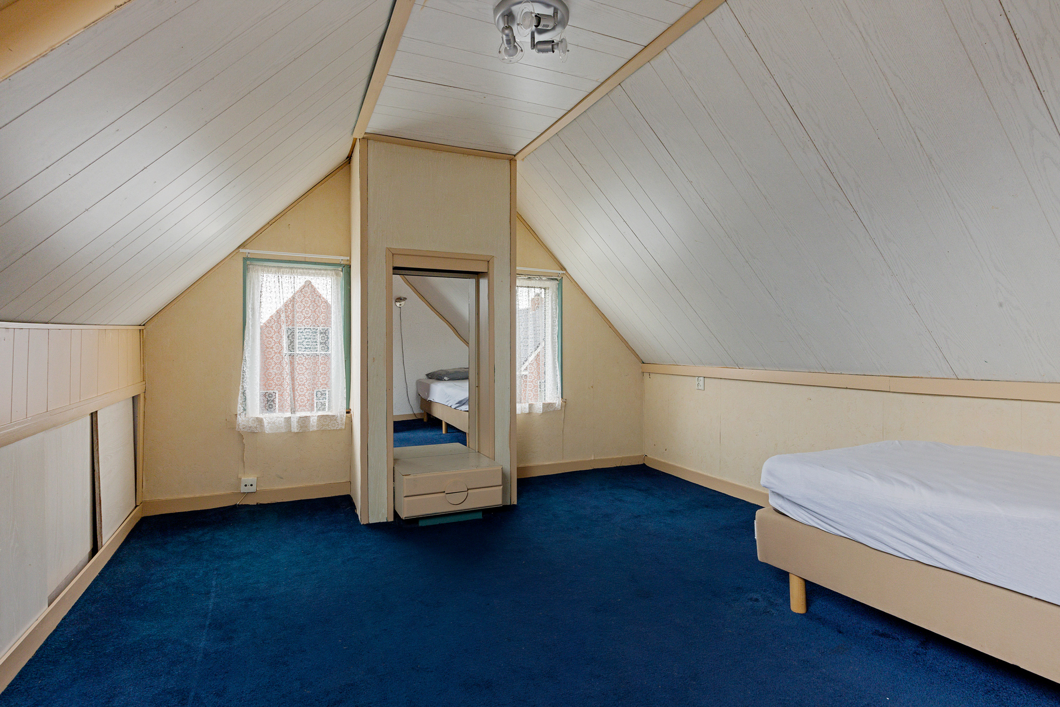 Op de verdieping zijn 2 slaapkamers van beide ca. 8 m². De aangebouwde garage heeft een oppervlakte van ca. 26 m², via een losse trap bereik je de vliering.
