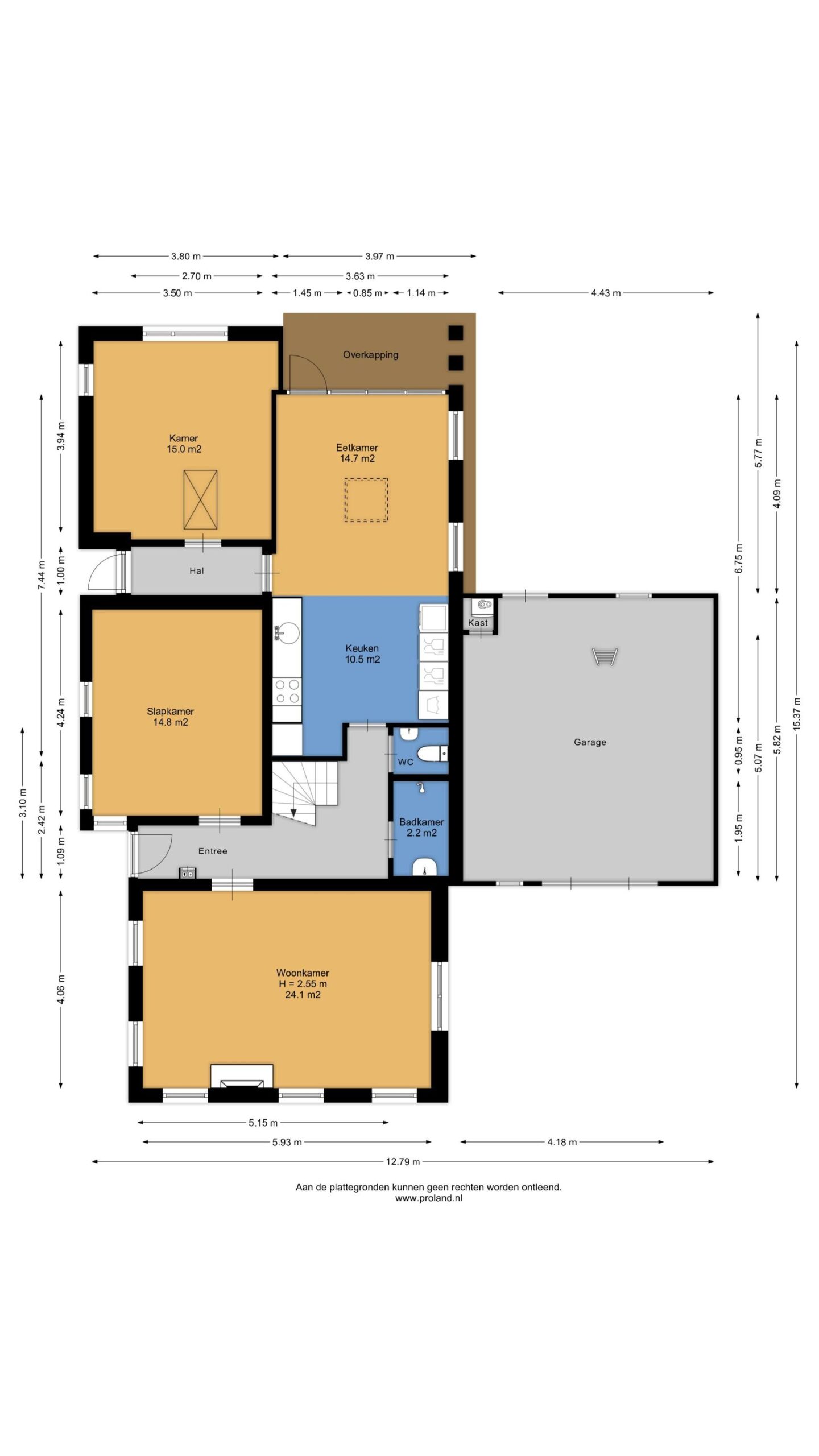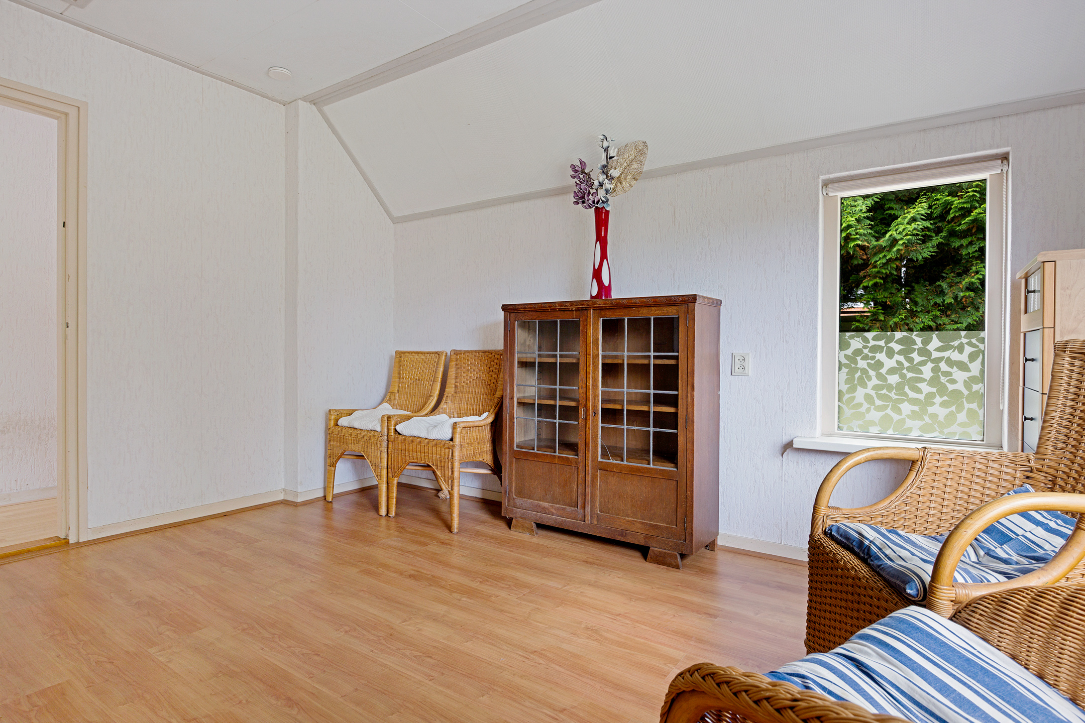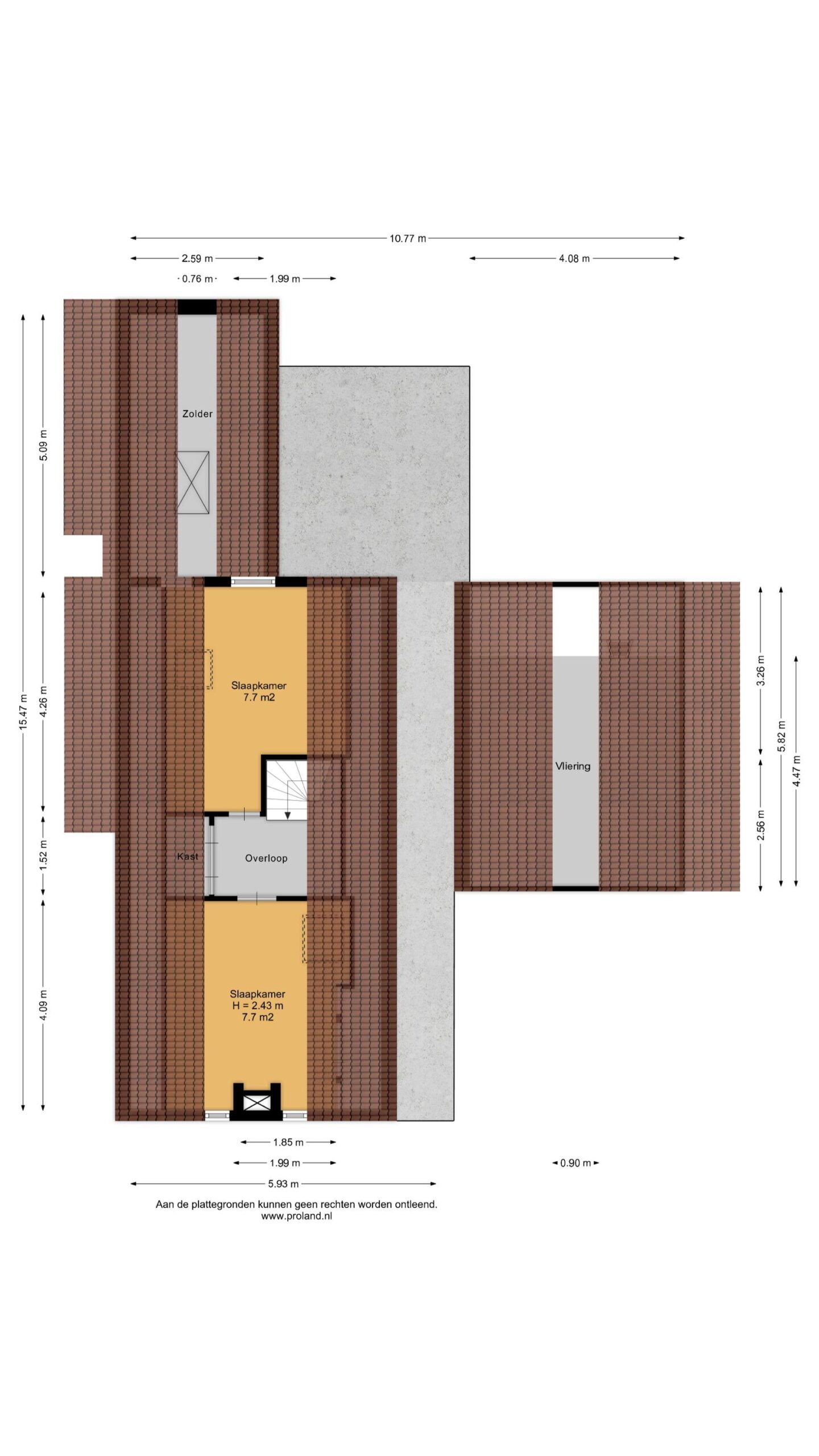 Op de verdieping zijn 2 slaapkamers van beide ca. 8 m². De aangebouwde garage heeft een oppervlakte van ca. 26 m², via een losse trap bereik je de vliering.