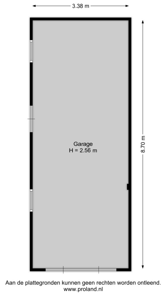 * Vrijstaande houten garage van 3,38 x 8,70 (ca 29 m²)